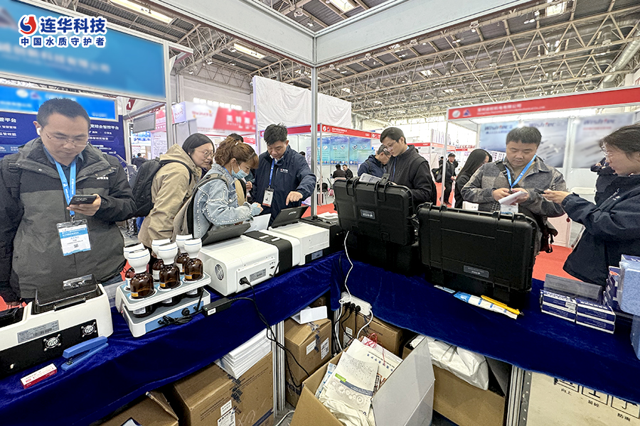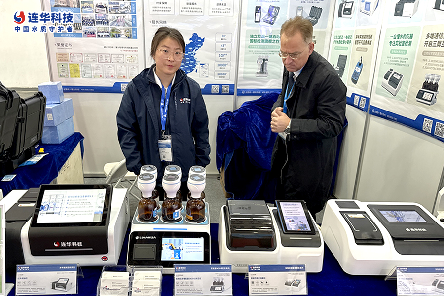 在E1043展位,連華科技以簡潔大氣的設計風格和豐富多樣的產(chǎn)品展示,吸引了眾多參會者的目光。作為水質檢測與分析儀器領域的佼佼者,連華科技此次攜紫外可見分光光度計LH-S700、便攜式多參數(shù)水質測定儀LH-E200、紅外測油儀LH-S600、化學需氧量(COD)智能回流消解儀LH-F510等十余款旗艦產(chǎn)品亮相展會,全面展示了其在環(huán)境監(jiān)測、水質分析等領域的深厚技術積累與創(chuàng)新能力。