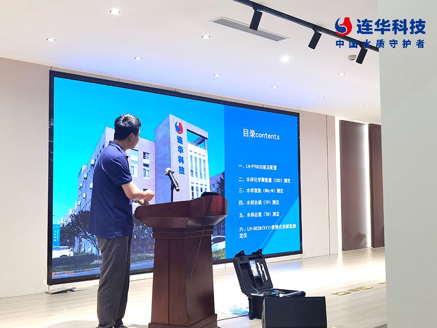 培訓過程中,連華科技作為業內知名的水質檢測儀器及耗材生產廠家,對清瀾系列便攜式水質測定儀LH-P700進行了詳細的介紹和培訓。上午的理論培訓環節,連華科技技術人員對水質測定儀的原理、功能、常規污染指標實驗操作方法及注意事項進行了全面系統的講解,讓參訓人員對LH-P700這款水質測定儀有了更加深入的了解。