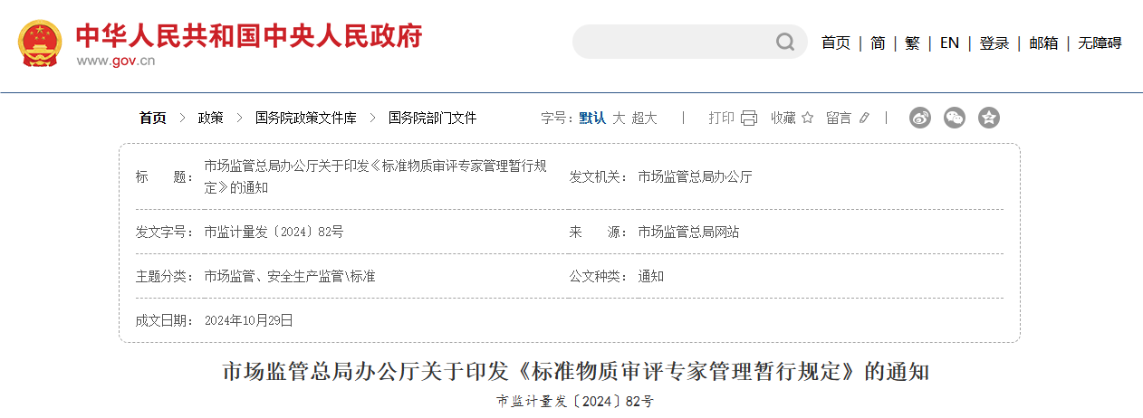 近日,市場(chǎng)監(jiān)管總局印發(fā)《標(biāo)準(zhǔn)物質(zhì)審評(píng)專(zhuān)家管理暫行規(guī)定》(以下簡(jiǎn)稱(chēng)《暫行規(guī)定》),共22條,旨在充分發(fā)揮專(zhuān)家在標(biāo)準(zhǔn)物質(zhì)管理中的作用,規(guī)范標(biāo)準(zhǔn)物質(zhì)技術(shù)審評(píng)專(zhuān)家管理,保證標(biāo)準(zhǔn)物質(zhì)定級(jí)鑒定工作的質(zhì)量和公正性。