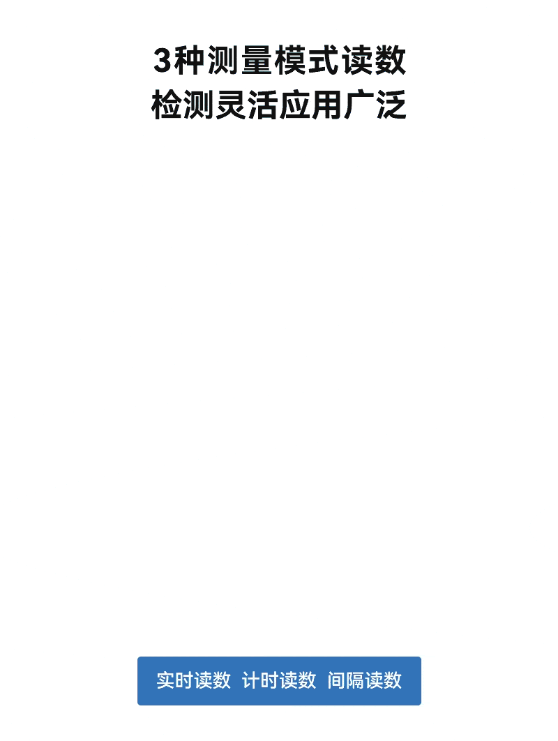 4、內置實時讀數、計時讀數、間隔讀數3種測量模式讀數,可根據檢測場景及需求靈活選擇;