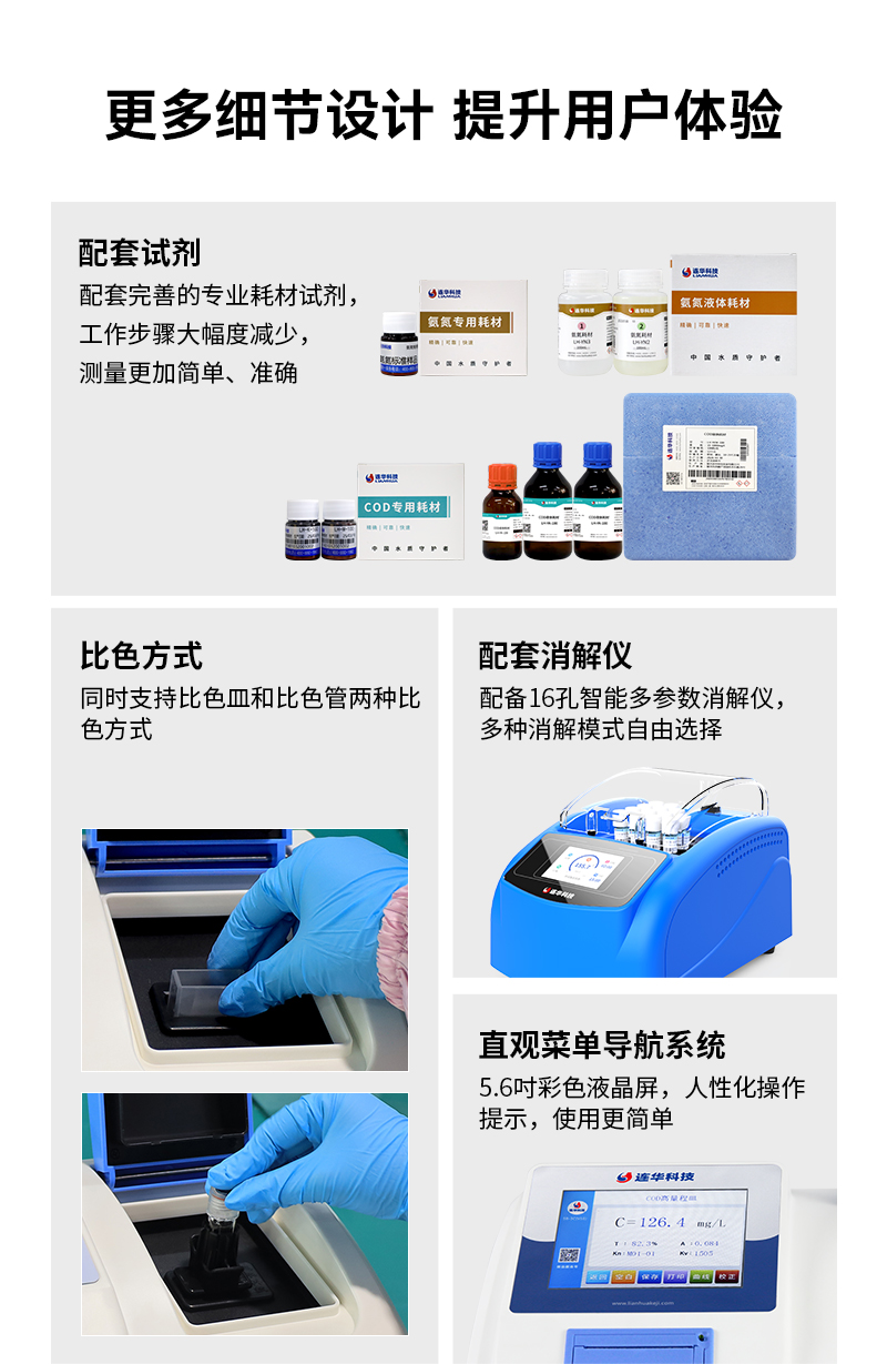 2、標配消解儀:標配16孔多參數消解儀(可選配),滿足用戶大批次樣品檢測的需求,節省時間;